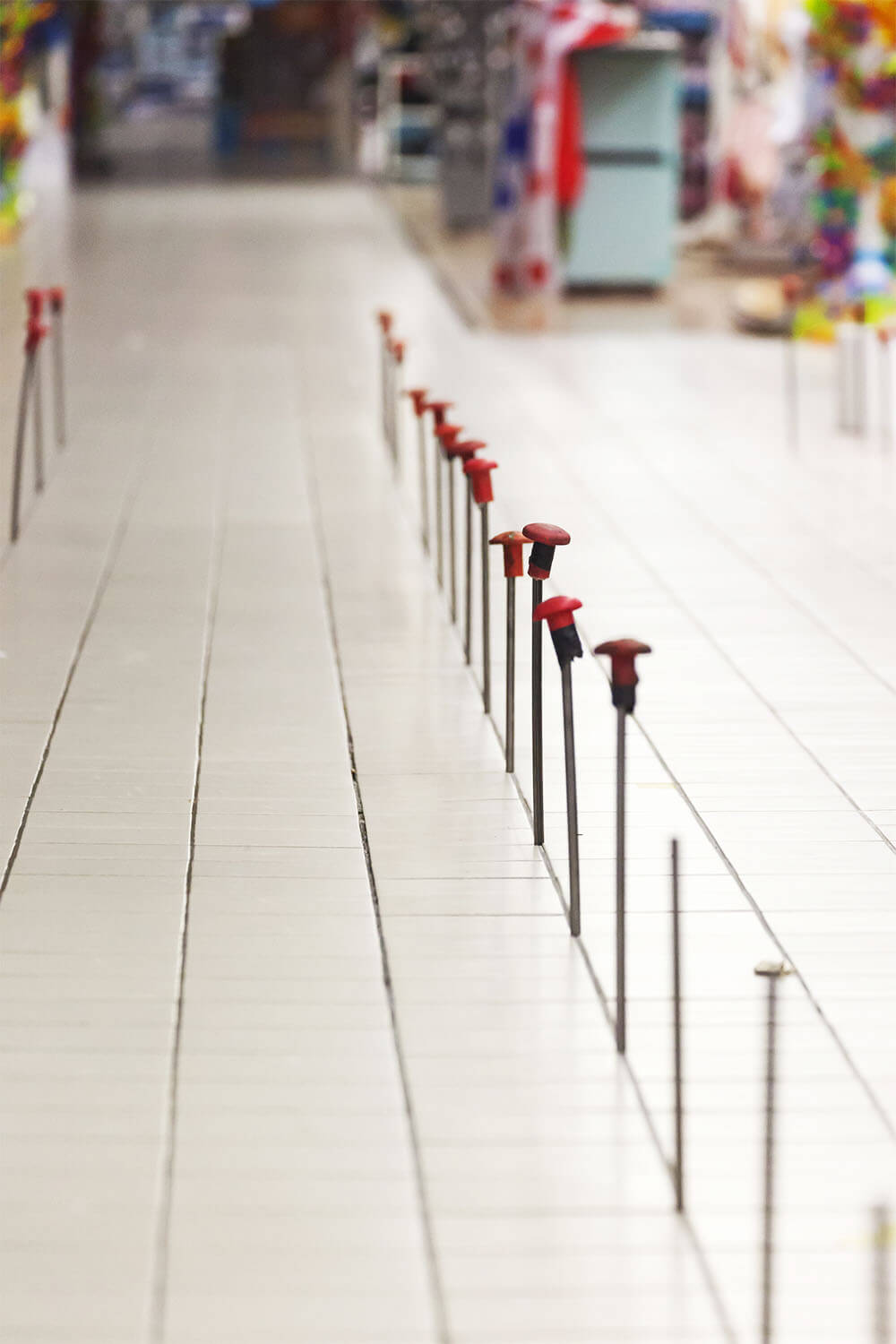 Les tubes d'injections, d'un diamètre de quelques millimètres seulement, sont introduits dans des trous préalablement forés . Les forages sont exécutés de manière à ne pas âbimer l'ouvrage : soit au pied du mur, soit à travers les joints des carrelages, etc. Ces trous seront ensuite rebouchés après le passage des équipes.