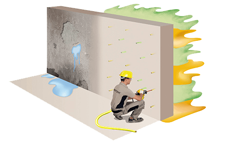 Grâce à sa double action, la solution Water Barrier permet de remplir de manière homogène l’ensemble des cavités du sol et/ou celles situées entre la maçonnerie et le sol. L’intervention se décompose en 2 phases distinctes :