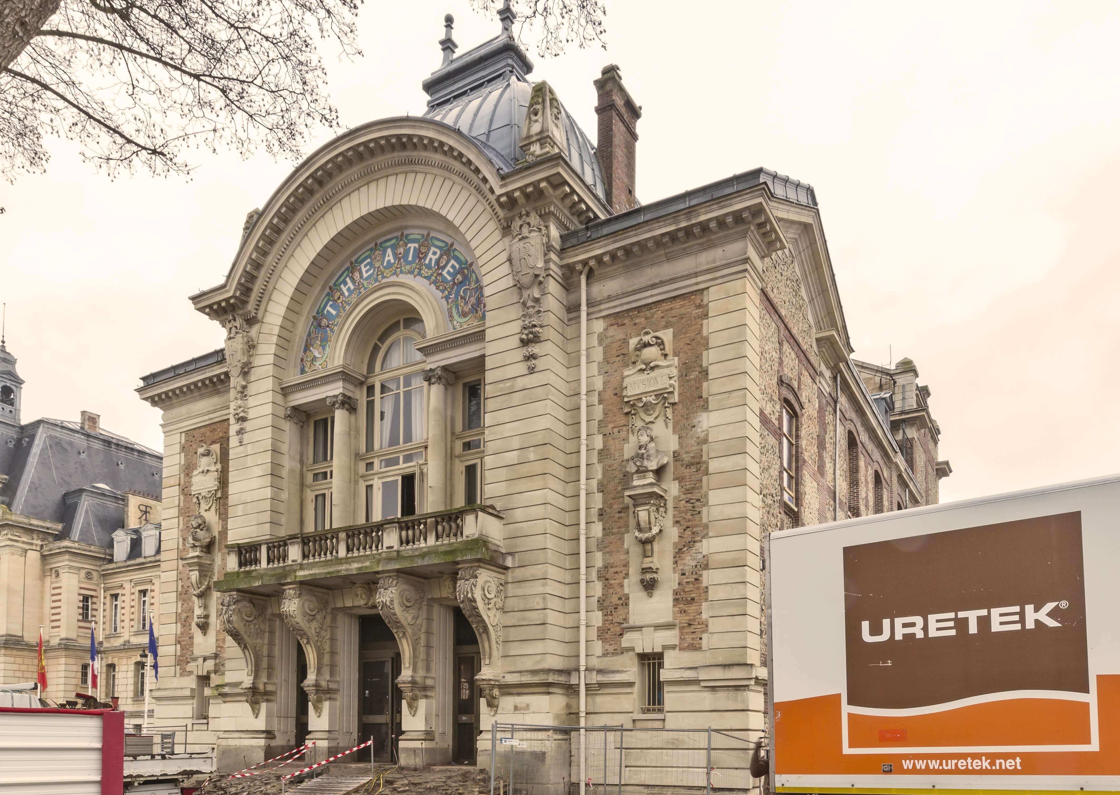 La solution préconisée a été celle de la société URETEK®, proposant un traitement local par injections de résine expansive et permettant d’améliorer la portance du sol. Les piliers de l’édifice, qui reposent sur des puits ballastés et qui assurent la bonne répartition de charge du théâtre, ont été préalablement localisés grâce à des fouilles et à l’aide de plans d’époque. L’intervention s’est déroulée de la manière suivante : le procédé Deep Injections® a permis l’encagement des puits et la reconstitution du sol d’assise. La technique Walls Restoring® a permis quant à elle de recréer le liant des puits ballastés. L’intervention a été rendue délicate, en raison de la présence de vestiges gallo-romains ainsi que de la nature même des puits et des remblais, constitués de silex très difficiles à percer et nécessitant des injections jusqu’à 11 mètres de profondeur par endroit.