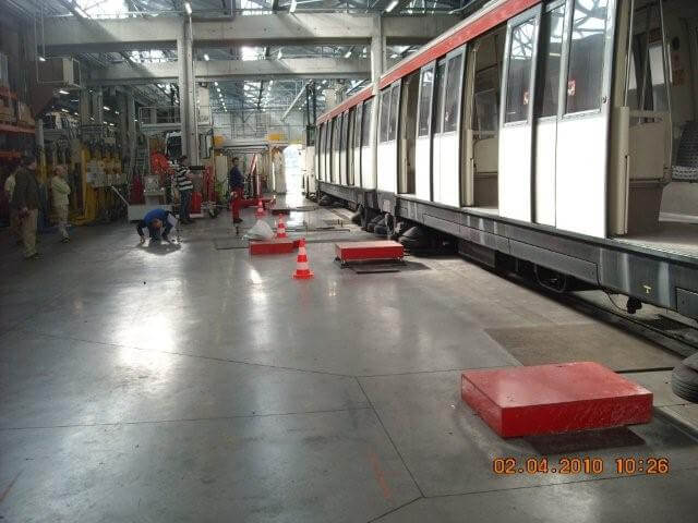 Au passage des voitures, dans une zone prévue pour l'installation d'un nouvel atelier de maintenance, la dalle de la future piste de contrôle présentait des déflexions rendant la maintenance non conforme.